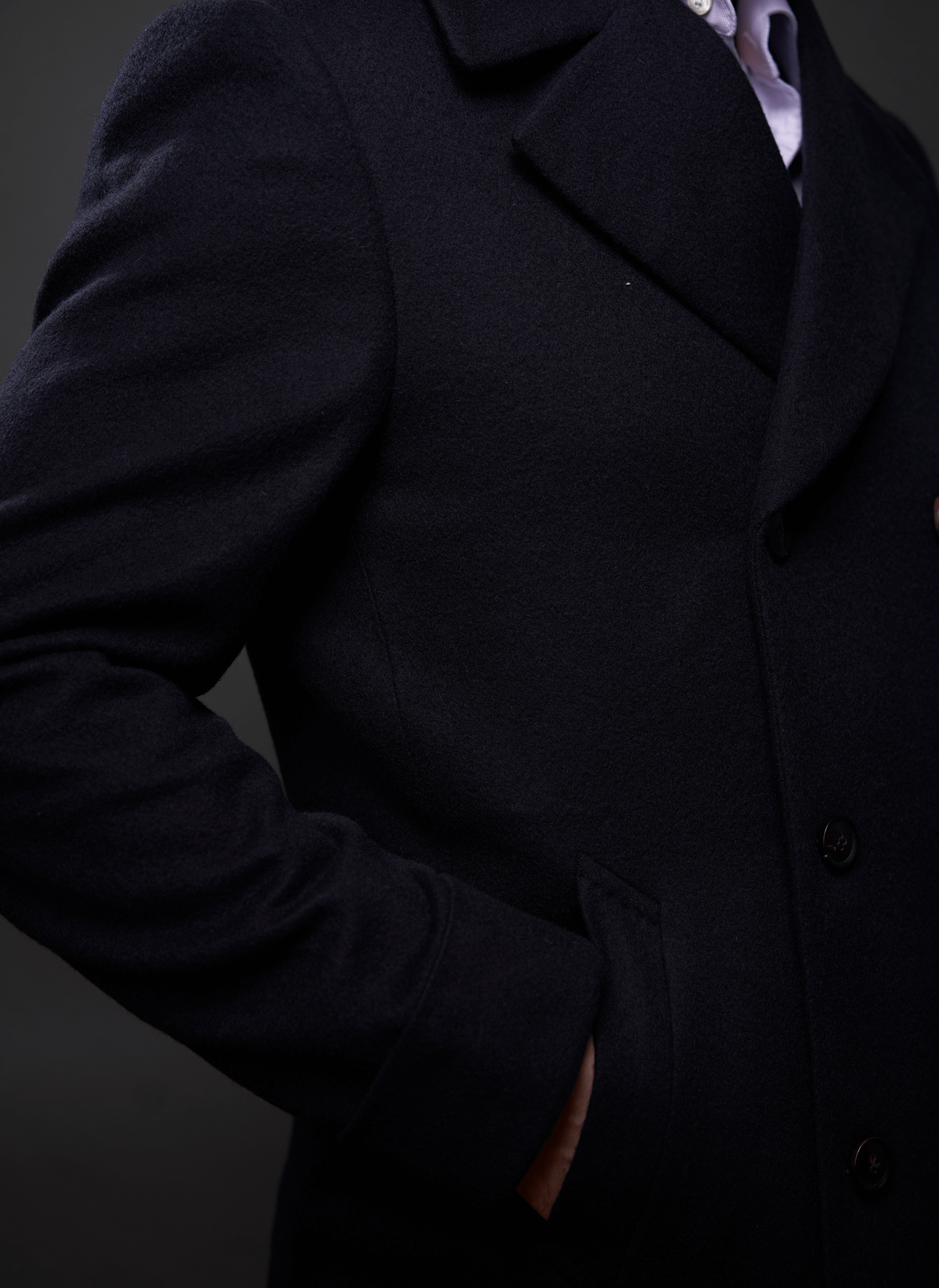 Meticulously crafted with the finest high-end cashmere sourced from England, this coat represents the epitome of true class and classic style. Experience unparalleled comfort and sophistication as you drape yourself in the essence of pure luxury. This coat is not just an investment in warmth but an expression of enduring elegance that transcends trends and time, making it an indispensable addition to your wardrobe.